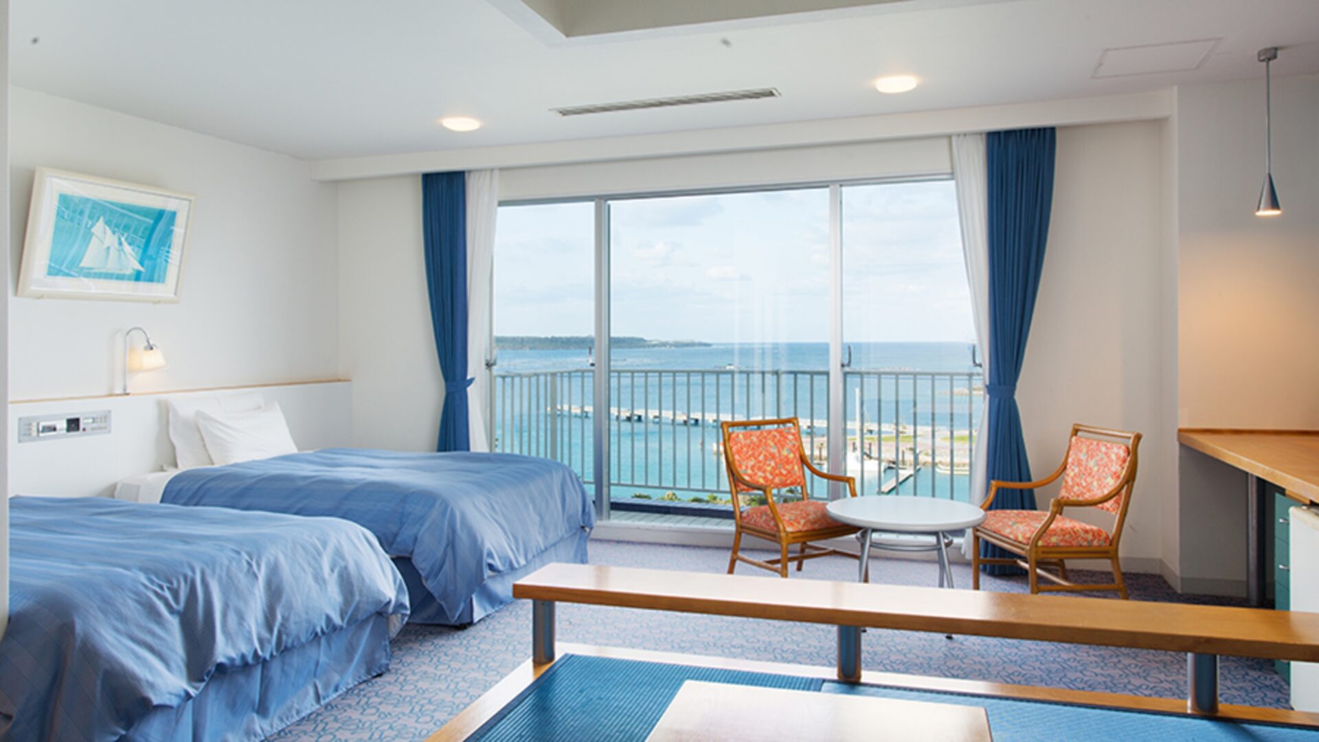 「マリンピアザオキナワ」は全49室の広々とした洋室・和洋室を備え、東シナ海を望むオーシャンビューバルコニーが魅力です。館内にはミネラル豊富な大浴場「珊瑚の湯」、快適な屋内プール、夕日が見える広大な中庭も完備。卓球やバドミントン、ブランコなどアクティビティも多彩で、隣接する「もとぶ元気村」ではイルカ体験やマリンスポーツも楽しめます。家族やグループ旅に最適なリゾートですよ。