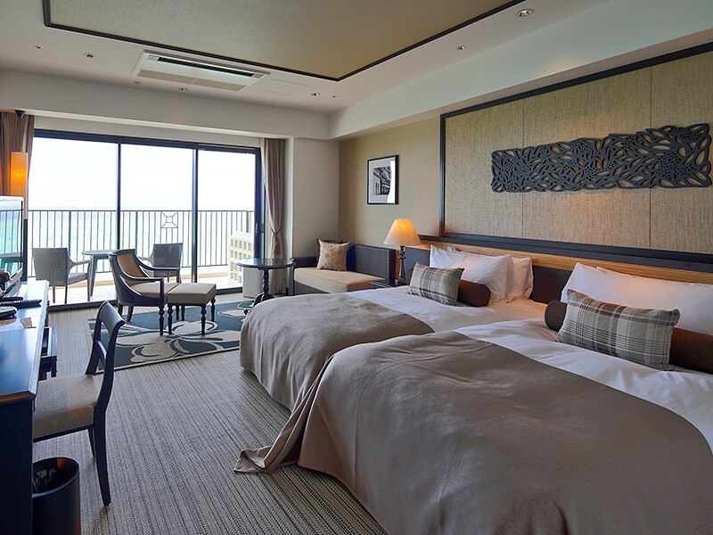 ホテルモントレグループ初、「ホテルモントレ沖縄 スパ&リゾート」と子ども服ブランド「ミキハウス」のコラボルームが誕生! 1日1室限定で利用できる特別ルームなのでご予約はお早めに。客室内は46平米と広々としていて、ベッドはシングルベッドを2台くっつけたハリウッドツインスタイルなので家族みんなで安心して休むことができます。