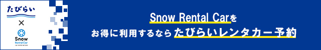 Snow Rental Carでは、常に最安値のレンタカーをご提供しており、レンタカーの料金はご利用の場所・日時・車両クラス等により料金は異なります。Snow Rental Carをご利用の人数や車の使用意図に合わせて、お好みの車両クラスをお選びください。なお、たびらいレンタカー予約で表示しているすべての商品には