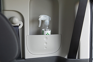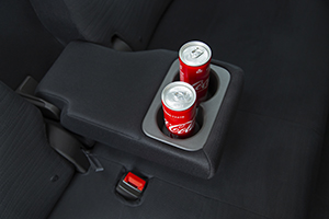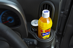 運転席と助手席のあいだには小物を一緒に置くことができるドリンクホルダーがあります。ホルダー自体が浅く、シートの真ん中にあるため熱い飲み物や紙コップなどを置くには向いていません。