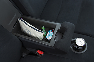 運転席と助手席のあいだの背もたれを倒すと、小物が収納できるアームレストとしても利用できます。