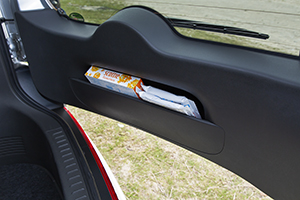 バックドアにも小物を収納できるスペースがあります。横開きになっているためドアを開いても物が落ちません。