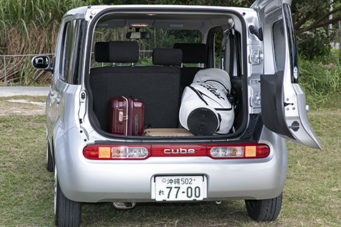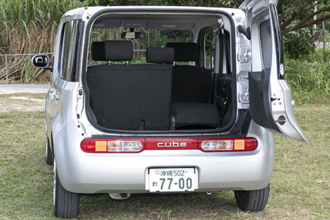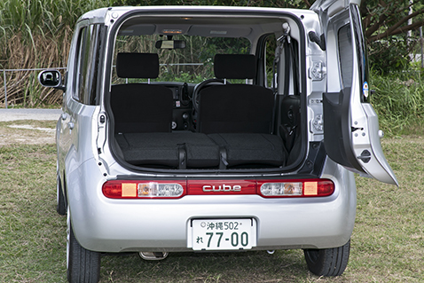 キューブのバックドアは横開きのため子どもや背の低い方でも開け閉めが簡単にできます。荷台はやや高めで深さがあるため荷物の上げ下ろしには注意が必要です。