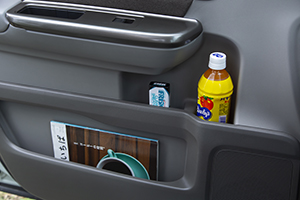 ドアポケットは仕切られており使いやすい形状。大判の冊子も収納できます。