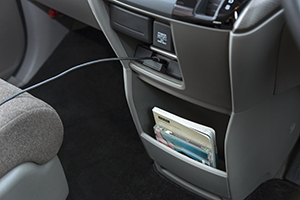 コンソール部分にはUSB電源やシガーソケット、スマートフォンやCDケースなどを収納できるスペースがあります。