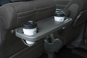 1列目シートの裏には、ドリンクホルダー付きのミニテーブルとスマートフォンなどを差し込める小さなポケットがあります。