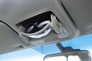 夏場や雪道でのドライブには欠かせないサングラスは運転席上部に収納できます。また、車内の後方確認ミラーとしても使用できます。