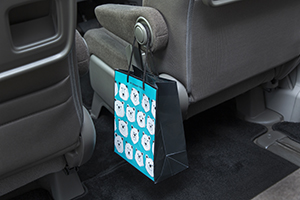 運転席シートのアームレストは袋を吊るせる仕様になっています。