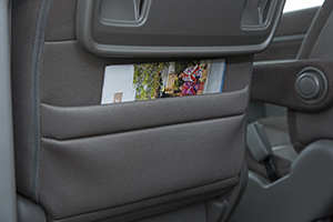 運転席、助手席後ろにはガイドブックなどを収納できるシートポケットがあります。浅めになっているので、冊子等が落ち込むこともありません。