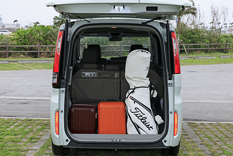 後部座席を倒さなくても、ゴルフバッグは立てて積み込むことができます。