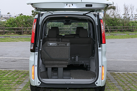 3列目シートは床下にぴったりと収納することができ、荷台のスペースを作りやすくなっています。この時の最大乗車人数は6名です。