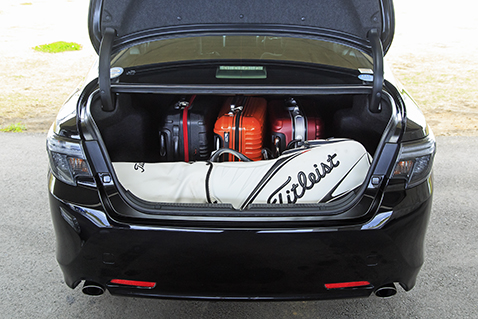 荷台には幅があるためゴルフバッグとSサイズのスーツケースが3つ収納できます。