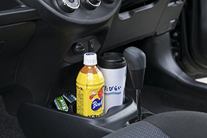 コンソール前部にドリンクホルダーと小物を置けるスペースがあります。
