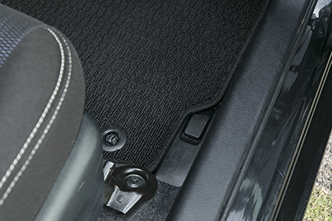 ガソリンレバーは右足元下にあります。レンタカー会社などによってはマットで隠れている場合もあるかもしれません。
