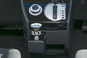 コンソール下のドリンクホルダーは前部分に1つのみ。開封した缶や紙コップなどを入れるのに適しています。