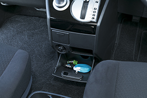 コンソール下にあるポケットは小銭入れや駐車券などを入れるのにちょうどよい大きさ