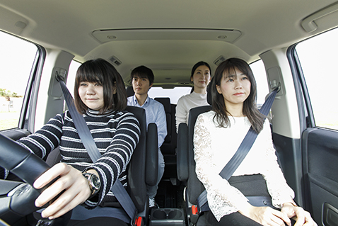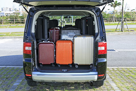 3列目シートは前後に動かすことができ、それによって荷物の積載量が異なります。この時の最大乗車人数は7~8名です。(車両タイプにより異なります)