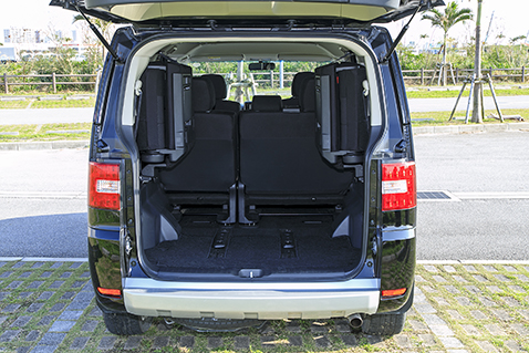 3列目シートは左右に跳ね上げることができその場合Mサイズが4つ以上積載できます。この時の最大乗車人数は5名です。