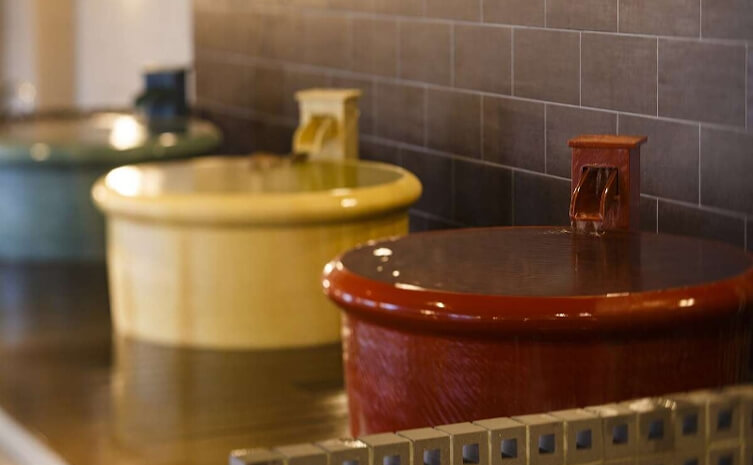 「HAKODATE 海峡の風」の温泉は、大正4年生まれの自家源泉。肌馴染みのよいナトリウム・カルシウム-塩化物泉を、男女入れ替え制の「大正ロマン」と「平成モダン」2つの大浴場で楽しめます。平成モダン風呂には広々とした内湯、水深1.2メートルの立ち湯、水素水風呂のほか、3種類のつぼ湯も。浴槽が豊富なので、湯めぐりをしているような気分も味わえますよ。