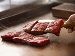熱々で味わえる牛の鉄板焼きは、大人たちで楽しんで