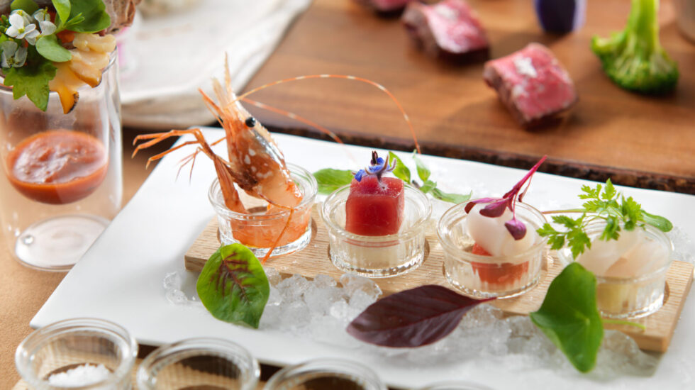 地元の旬食材を使った、目にも鮮やかな創作フレンチコースを堪能できるリゾート。ホテルの半径50マイル圏内で生産された食材を使用しており、訪れるごとに新たな発見が待っています。レストランのワインセラーには、世界各国のヴィンテージワインがズラリ。ソムリエに相談しながら、次の一杯をチョイスして。和食とフレンチが融合した「フレンチ・ジャポネ」のコースも用意されています。