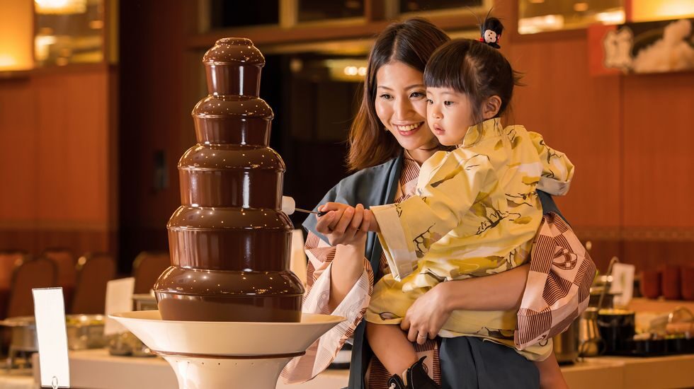 夕食はビュッフェがやはり人気。9カ月前後のベビーフードの用意があるので、赤ちゃんを連れた旅行にもぴったりです。事前予約で個室の用意も可能なので、家族水入らずでのんびり食事を楽しめます。コールドストーンアイスやプチケーキなどのスイーツも豊富ですよ。お食い初めなど、節目のお祝い宿泊にもおすすめ。