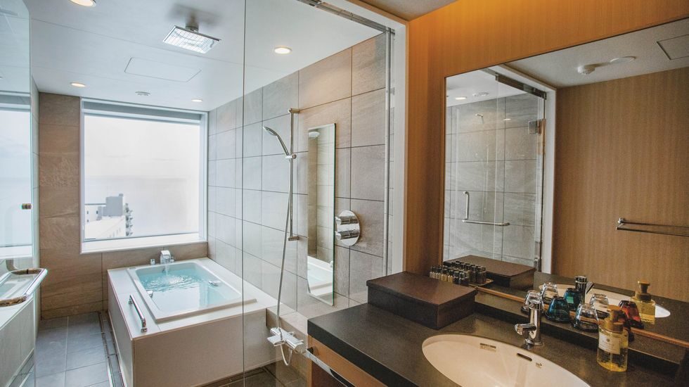 北海道三大温泉郷のひとつ・湯の川温泉の「函館湯の川温泉 海と灯/ヒューイットリゾート」には、高級旅館のような佇まいとホテルの気軽さを兼ね備えた空間が広がっています。到着時に提供される、地元名物の串団子も好評です。客室は、オーシャンビューの海側と夜景が美しい街側から選択を。自然が好きな人には、やはりオーシャンビューの部屋がおすすめ。全室10階以上の「ジュニアスイート」では、この客室だけに用意されたコーヒーを飲みながら眺望を楽しめますよ。函館では珍しいインフィニティ露天風呂から見る水平線も、また格別です。事前に購入すれば「月見酒」を持ち込めるので、ほろ酔い気分の湯浴みを満喫してみては。湯上がりには、北海道産の牛乳をどうぞ。
