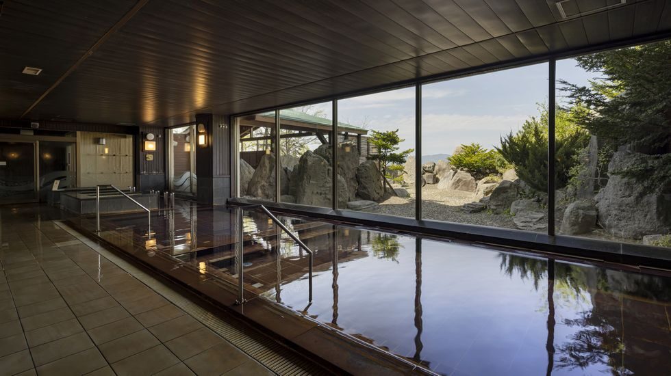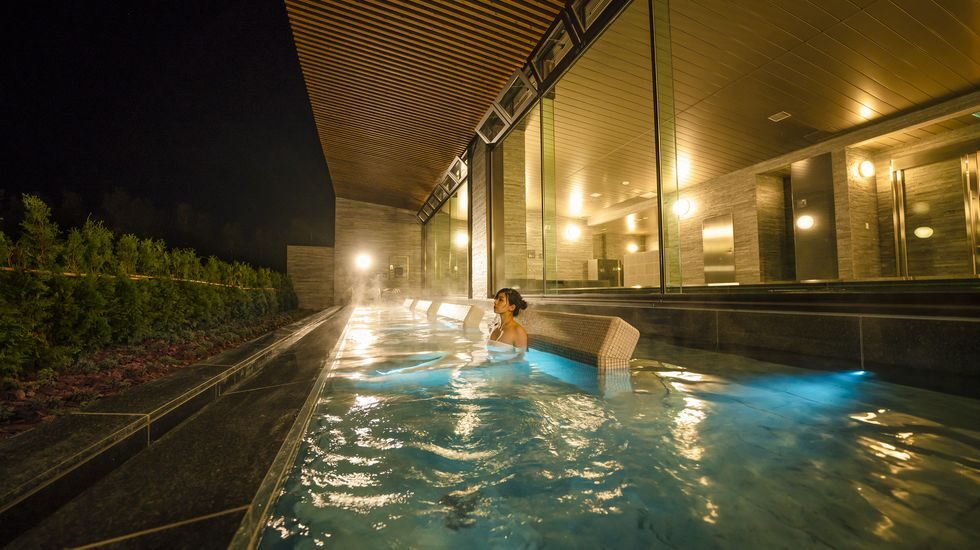 【北海道/留寿都(ルスツ)】新千歳空港と札幌から、車で1時間30分ほどの場所にあるルスツリゾート。リゾート内にはいくつか宿泊施設が点在していますが、北海道最大級の遊園地に徒歩で向かえる場所に「ルスツリゾートホテル&コンベンション」はあります。ノースウイング6階「ルスツの湯・・ことぶきの湯」の露天風呂では、北海道の四季折々の風景を眺めながらの湯浴みが叶いますよ。夜の露天風呂は柔らかな照明が灯り、天気次第では美しく輝く星を眺めることも可能。夏の新緑はもちろん、雪が降り積もる冬の湯浴みも魅力的です。男性浴場にはドライサウナが、女性浴場にはミストサウナがあるので、たっぷりと遊んだあとにはぜひサウナと絶景温泉でリフレッシュしてみてくださいね。