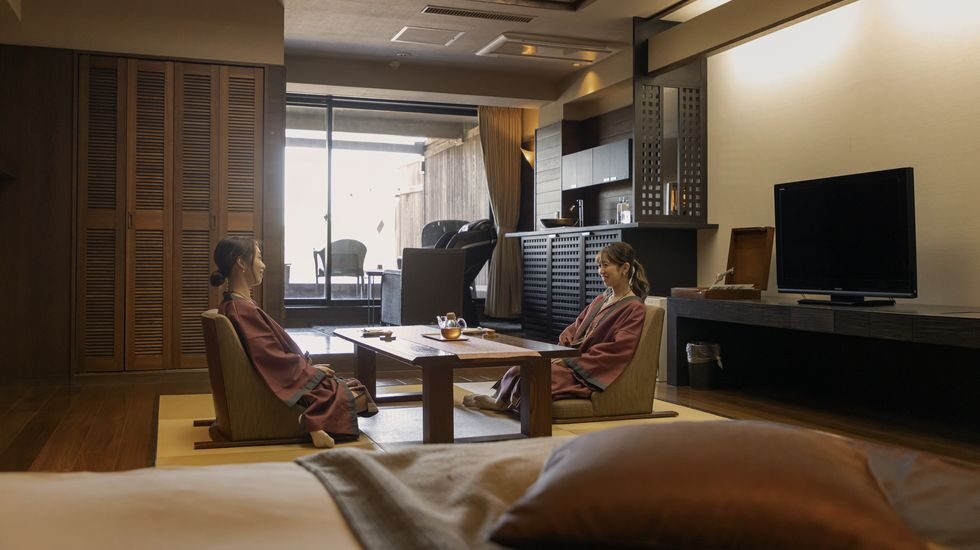 大沼国定公園の「小沼」のほとりに建つ、豊かな森に囲まれた隠れ家的リゾート。特別な滞在は、スパリビング付きツインルームへ。スパルームは開放的な空間で、四季の景色とともに贅沢な時間を過ごせます。リビングにはプロジェクターも。ワイン片手に映画やお気に入りの動画を楽しんで。