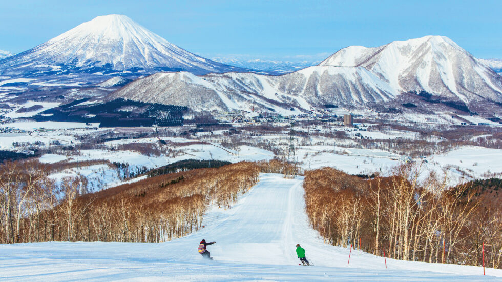 羊蹄山の眺望とともに、山頂から滑走するコースも