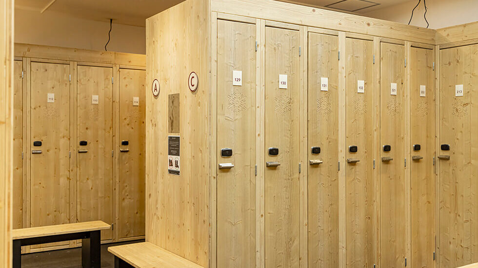 ゲレンデ直結のロッカー。ブーツを乾かす温風設備も