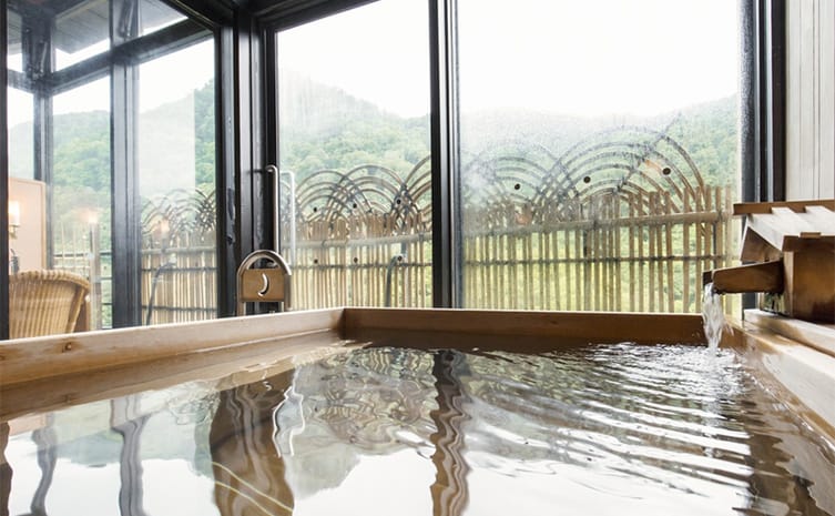 赤ちゃん連れで定山渓を訪れるなら、子連れへのサービスが充実している「定山渓温泉 ぬくもりの宿 ふる川」がおすすめ。山小屋をイメージしたラウンジや囲炉裏のある土間など、随所に自然を感じられる館内はほっこりと穏やかな時間が流れます。宿自慢の温泉は肌に優しいナトリウム塩化物泉。柔らかい泉質なので赤ちゃんの温泉デビューにも最適です。周囲を気にせずに入浴するなら、有料で利用できる貸切風呂という選択肢も(要予約)。ベビーチェアやベビーバス、ベビー用のソープ類も充実していますよ。夕食は季節の食材を贅沢に使った和食会席。離乳食は持ち込みが可能で、あたためにも対応してもらえるのがうれしいポイントです。心温まるおもてなしを噛み締めながら、家族水入らずのひと時を満喫して。