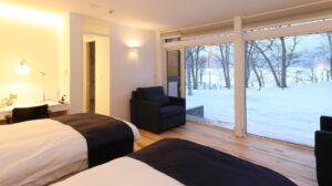 1組限定・1棟貸しの「ワッカヌプリ」は、家族やグループで屈斜路湖を満喫するのに絶好のホテル。8名まで宿泊でき、洋室と和室の両方に源泉100%かけ流しのお風呂を備えた高級感のある造りが特徴です。洋室には、シモンズ社製エグゼクティブプレミアムのベッドマットレスを設置。和室は、高級ホテルが使用する体にやさしいマットを採用するなど、質の良い睡眠にもこだわっています。どちらの部屋も壁一面が窓になっており、木々の間から屈斜路湖の輝く湖面を一望できますよ。部屋から直接、湖まで歩いて行けるので、庭感覚で屈斜路湖が楽しめますよ。 和食一筋の料理人による、北海道の食材を使った高級コース料理も乞うご期待。こちらのホテルでは、屈斜路湖やオホーツク海でゲストが釣り上げた魚も、調理してもらえますよ。