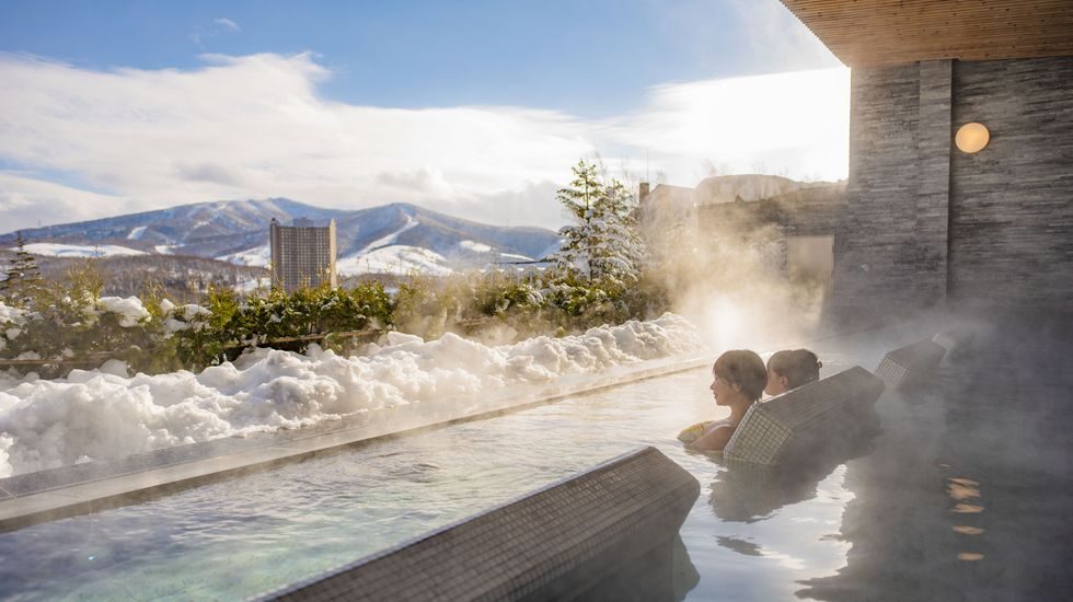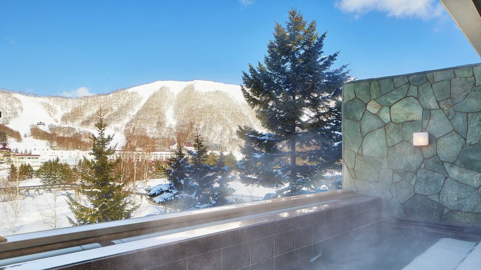 ニセコ グラン・ヒラフスキー場に隣接しており、ゲレンデ直結でスキーイン・スキーアウトが叶うリゾート。海外リゾートのようなスタイリッシュな館内でありながら、天然温泉(加水あり)が楽しめる宿泊者専用の温泉大浴場も。有料の貸切家族風呂もあるので、小さな子どもを連れたファミリーにもぴったりです。グループや三世代での滞在なら、目の前に大きな「蝦夷富士」がそびえるペントハウスでの宿泊をおすすめ。最大10名まで宿泊することができ、100%源泉掛け流しの温泉を堪能できる露天風呂も付いていますよ。