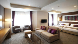 登別で客室露天風呂があるホテルを探しているのであれば、「祝いの宿 登別グランドホテル」もぜひチェックしておきたいところ。客室露天風呂の他にも、最上級のおもてなしを体感できるエグゼクティブフロア「スイートルーム」もおすすめ。スイートルームに宿泊すると専用の朝食会場を利用できるので、特別な日を祝う旅行にぴったりです。もちろん客室露天風呂付きの洋室や和室も用意されており、プライベートな空間で登別温泉を堪能できますよ。また、鬼をテーマにしたユニークなサウナや、3つの泉質が楽しめる大浴場があるのも大きなポイント。登別温泉の多彩な効能をじっくり味わえる設備が揃っています。夕食には、和洋折衷の料理が提供され、地元・登別周辺の旬の味覚に舌鼓を打つことができます。特別な日にふさわしい「祝いの宿 登別グランドホテル」で、贅沢な時間を楽しんで。