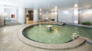 Zepp Sapporoや中島公園駅からすぐの場所に建つ「ホテルマイステイズプレミア 札幌パーク」。ホテルには立体駐車場があり、車でのアクセスも便利です。新千歳空港への連絡バスのバス停は、徒歩わずか1分ほど。Zepp Sapporoまでは徒歩約4分と、ライブの前後の宿泊にぴったりです。ライブで疲れた体を癒せる、天然温泉があるのもうれしいポイント。客室から大浴場への移動は、部屋着とスリッパのままでかまいません。洗い場の数が多いので、待機することも少なくのんびり過ごせますよ。御影石のメイン浴槽のほかにテレビ付きのサウナやジェットバスを備えており、女性風呂には露天風呂も用意されています。