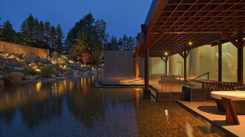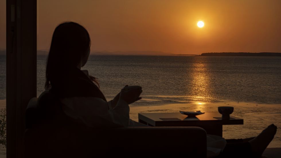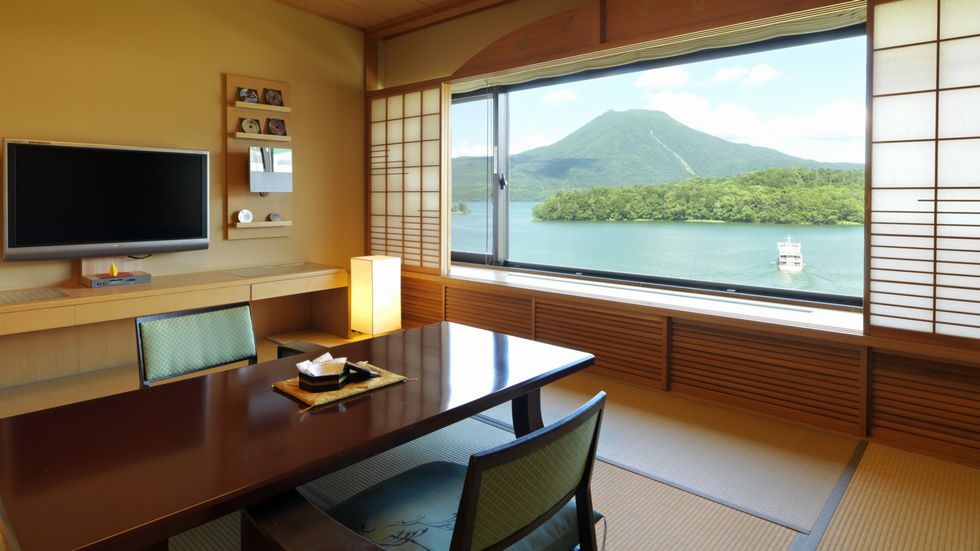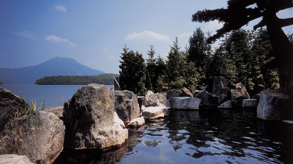 神秘の湖・阿寒湖が目の前に広がる絶好のロケーションに佇む「あかん遊久の里 鶴雅」。大浴場では阿寒湖の絶景をひとり占めするかのような空中露天風呂や、まるで湖とつながっているかのような感覚に浸れる1階の庭園露天風呂など、温泉に浸かりながら阿寒の絶景を眺められます。