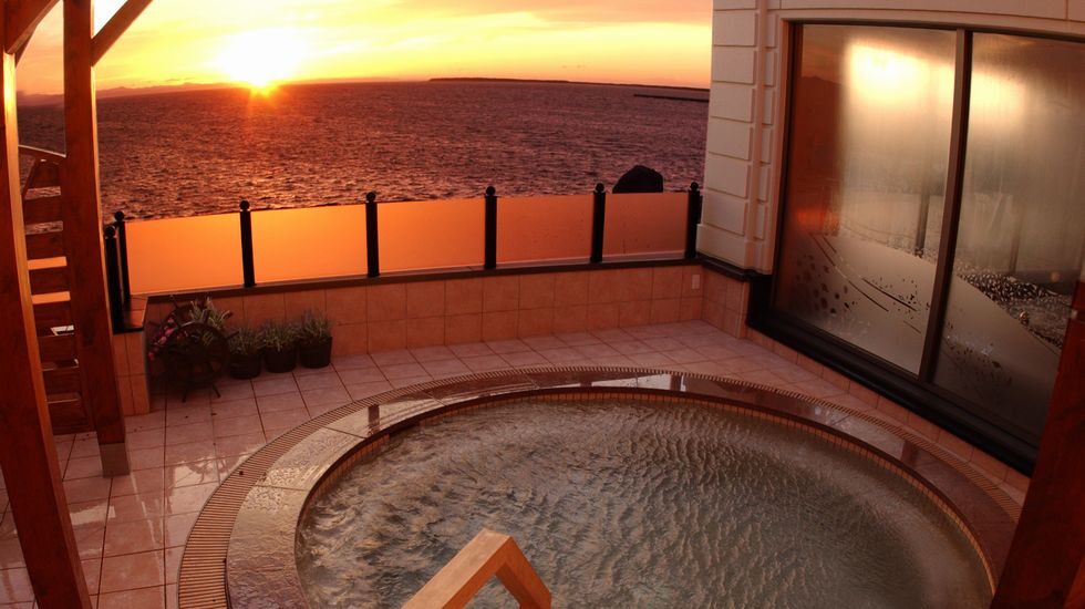 北海道きっての温泉地、函館湯の川温泉地で約1世紀にわたり愛され続ける老舗旅館。客室全22室が津軽海峡を望む部屋。温泉大浴場も津軽海峡の大海原を間近に望む造りになっており、チェックイン直後には美しい夕日を、夜は露天風呂から波音とともに満天の星を楽しめます。
