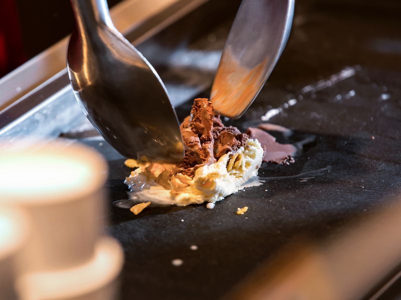 11時30分~15時はランチブッフェ、17時~21時30分はディナータイム。ランチブッフェと土曜日のディナーブッフェには朝食と異なる料理が多く、天ぷらの実演などが好評。冷たいストーンの上で作ってくれるアイスクリームは1番人気です。