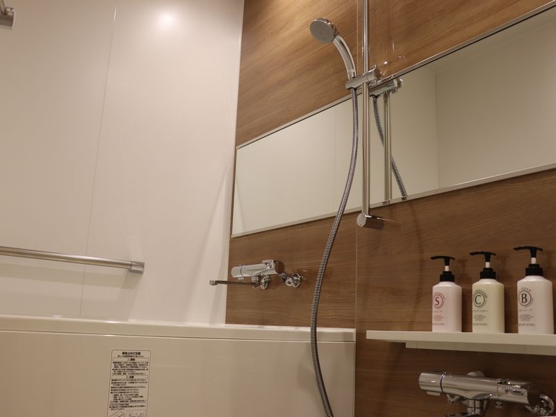 バスルームは洗い場付き。浴槽も足を伸ばして入れる広さで、長旅で疲れた夜も、お風呂に浸かって心身ともにリフレッシュできるのがうれしいですね。