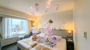 「プレミアホテル 中島公園 札幌」で、2024年5月よりホテル公式サイト予約限定のアニバーサリープランを販売開始しました。誕生日や記念日にうれしいこのプランを利用して、忘れられない思い出を作りませんか?アニバーサリープランには、客室のバルーン装飾とホテルパティシエ特製のデコレーションケーキが付きます。