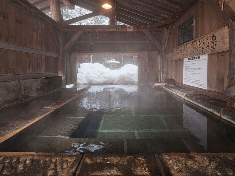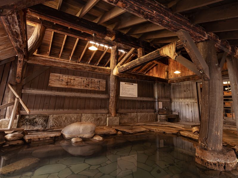 こちらは「白灯の湯」の様子。それぞれの浴場には洗い場がないので、大浴場で汗を流してからゆったりと入浴をするのがおすすめ。