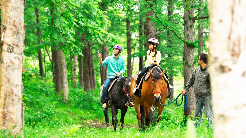 乗馬体験はファミリーコースもあるので、初心者や子どもでも気軽に楽しめます。いつもより少し高い目線からルスツの森を散策してみましょう。