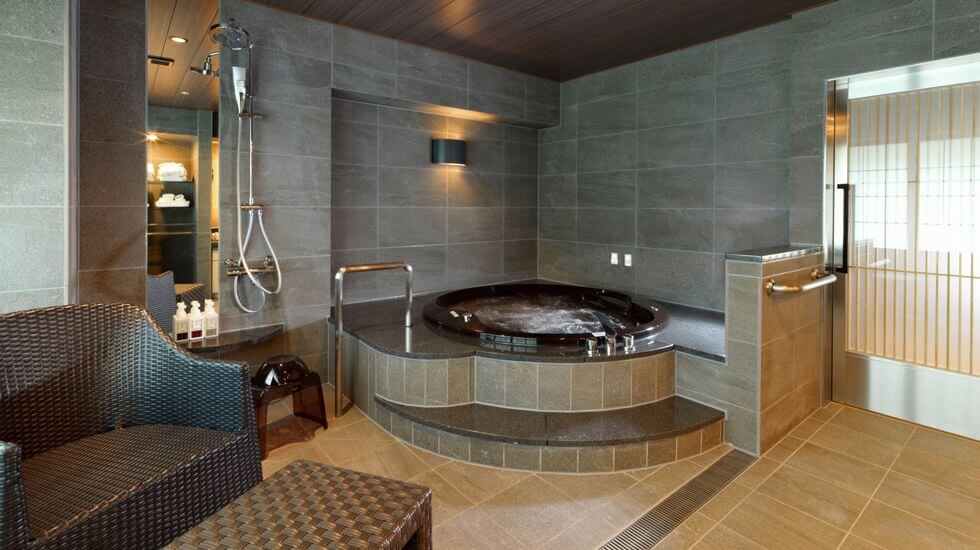 4名まで利用できる部屋「ジェットバス付きデラックス和洋室」のジェットバス。マッサージ効果を得られるジェットバスは、長旅で疲れた体をほぐしてくれるはずです。