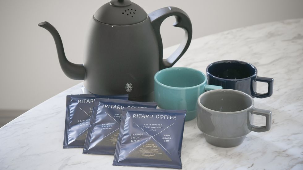 客室にあるドリップコーヒーは、札幌市円山にある「RITARU COFEFEE(りたるコーヒー)」のアンワインドオリジナルブレンド。到着時にひと息いれたい時も、目覚めの一杯にも、おいしいコーヒーは心落ち着くひと時をもたらしてくれます。そっと手になじむ、シンプルかつ存在感のある「HASAMI」のマグカップもオシャレ!