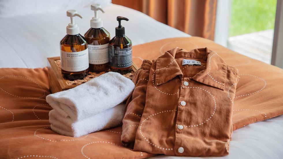 バスアメニティーはMARKS&WEB。広々としたバスルームでリフレッシュしたら、着心地の良いSUKU HOMEのパジャマに着替えましょう。