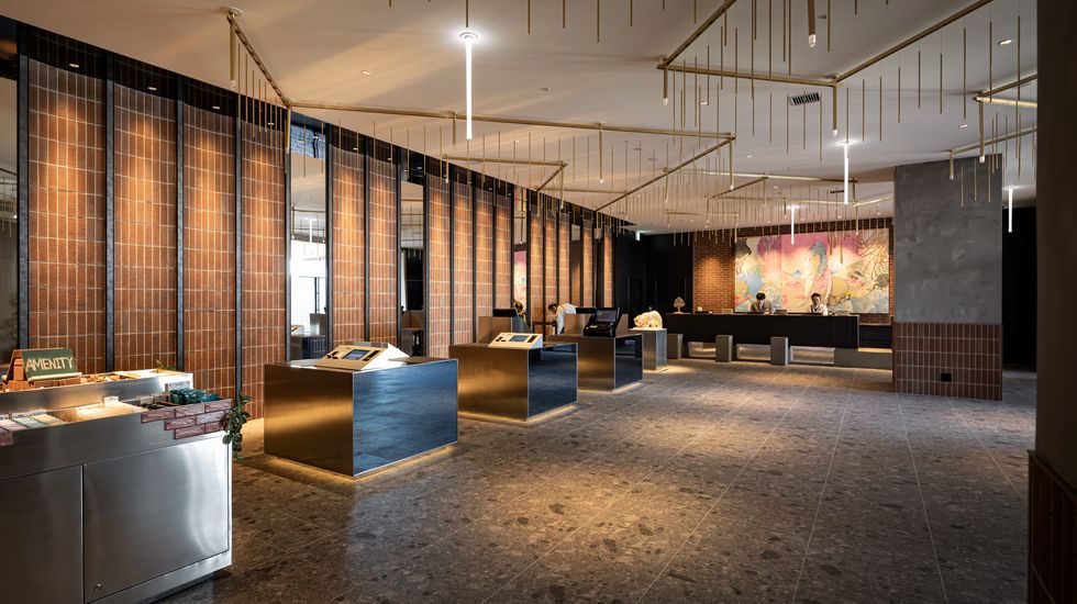 7階ロビーは北海道ならでは、レンガと札幌軟石のしつらえでお出迎え。ホップから抽出したオリジナルアロマがフロアに漂っています。
