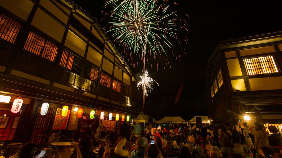 昔ながらの町屋建築が再現された「ザ・ビレッジ」。時期によってはステージライブや花火大会といった夏ならではのイベントも開催されますよ。