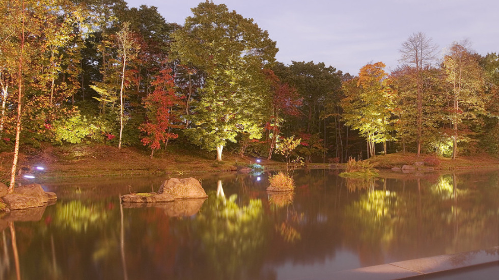 西大沼温泉の湯を引く大浴場内につくられた露天風呂は、池越しに四季の景観を楽しめるナイススポット。5月中旬頃にはつつじの花、夏には青々とした新緑、秋は紅葉、そして冬は雪化粧と、その季節ならではの景色が目に映ります。夜にはライトアップされ、紅葉の時期は幻想的な雰囲気に。温泉と四季折々の風景を満喫することで、「日本人で良かった」としみじみ感じられそうです。