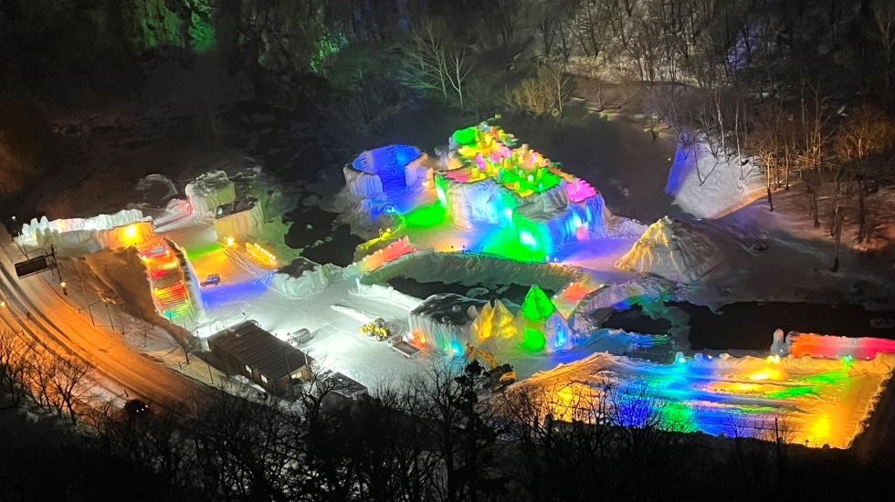 冬の風物詩「層雲峡温泉 氷瀑まつり」の開催期間中(2024年は3月17日まで)は、ライトアップされた幻想的な氷のオブジェを眼下に眺めることができます。花火がある日は、花火も見えるそう。層雲峡温泉の中で、もっとも高台に位置するホテルだからこその壮大なロケーションを満喫しながら、リニューアルしたばかりの本格サウナをぜひ楽しんで。
